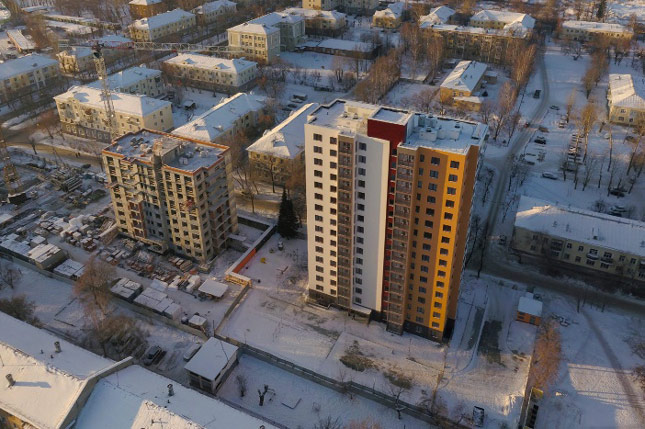 Первый дом – самый высокий, 16-этажный, в его составе 127 квартир общей площадью 5 745 кв. м. В доме уже практически не осталось свободных квартир.
