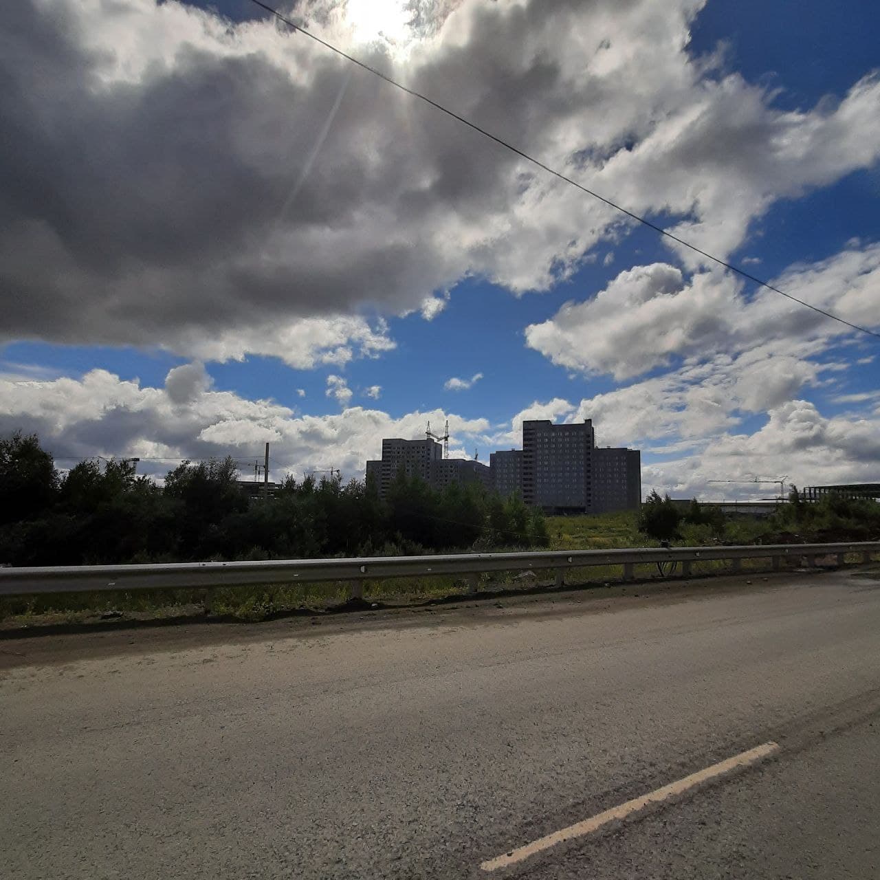 Асфальт на Новокольцовской, переходящей через круговой центр в Александровский бульвар, ведет к большой стройке Дворца водных видов спорта и общежитий. И заканчивается закрытыми воротами и шлагбаумом.