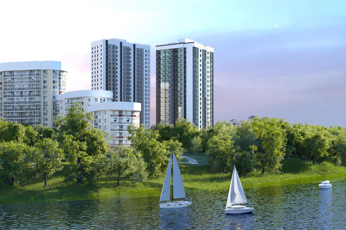 Дизайнеры уделили большое внимание местам общего пользования. На первом этаже предусмотрены лаунж-зона для отдыха и встреч, стойка ресепшен, места для хранения колясок. В новостройке предусмотрен подземный паркинг, спуститься в который можно на лифте из подъезда. Планируется благоустройство не только придомовой территории, но и окрестностей – здесь появится набережная с беседками, небольшим пирсом, прогулочными зонами.