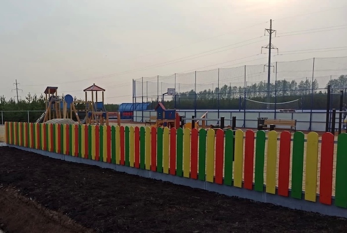 Компания «Экопарк «7 прудов» рассказала о ходе строительства игрового городка в первой очереди комплекса посёлков «Зелёные кварталы». В мае 2023 года по периметру городка был установлен яркий забор. Детская площадка располагается рядом со спортивным кортом, строительство которого было завершено в июле 2022 года.