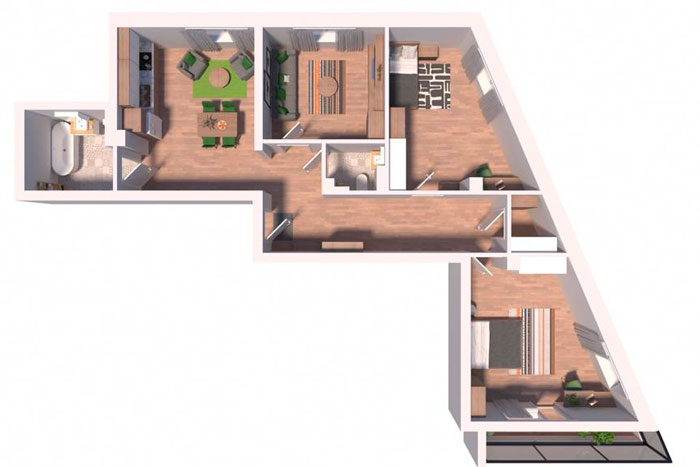 Квартиры, участвующие в акции, имеют три изолированные комнаты, кухню-гостиную площадью 15 кв. м., два санузла, большую гардеробную и 7-метровую лоджию. Сам застройщик называет такие квартиры евро-четырёхкомнатными. Сегодня свободные еврочетырёшки есть на этажах с 3-го по 8-й. Ценник у всех одинаковый – 8,15 млн руб.