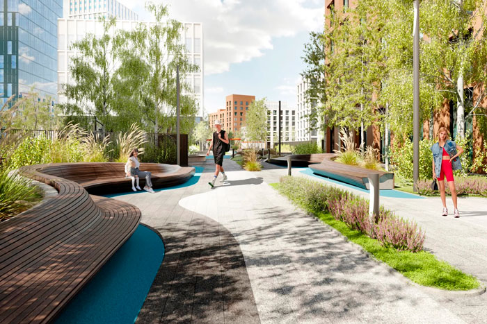 Через все семь кварталов пройдёт зигзагообразная аллея. На ней предусмотрены зоны для игр, йоги и нетворкинга, поляны с лежаками и площадка для стритбола.
