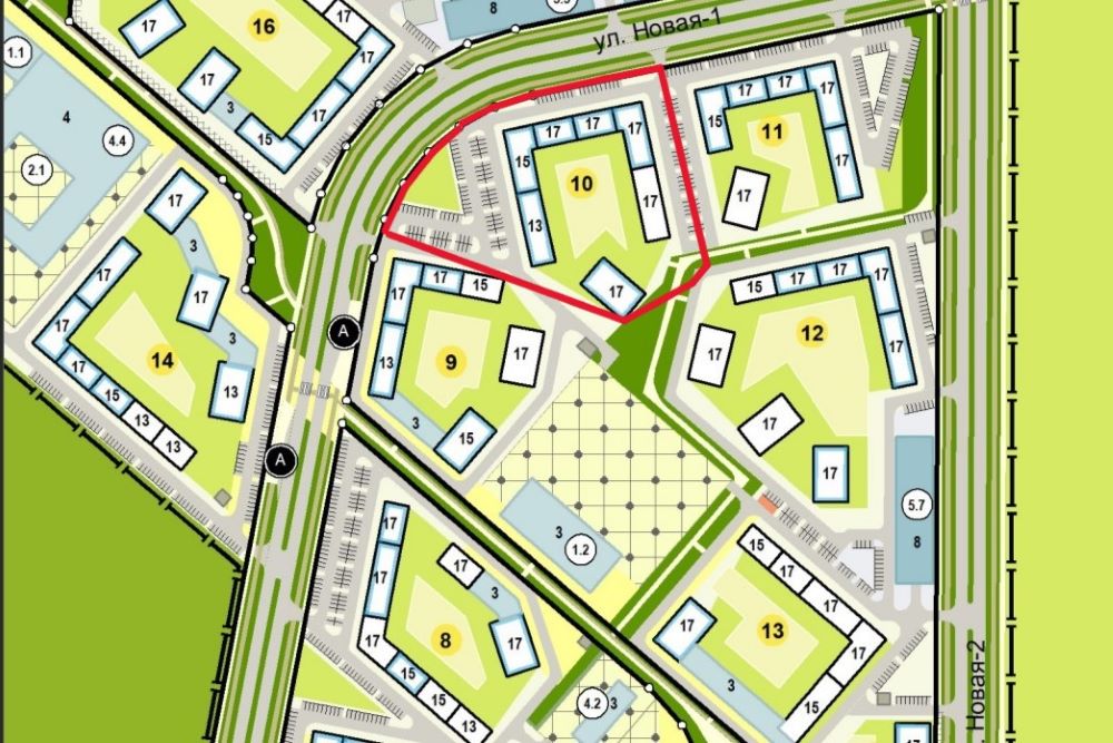 Согласно ранее представленному застройщиком проекту, на обследованном участке предполагается строительство нескольких жилых секций высотностью от 13 до 17 этажей. На нашей карте участок под строительство первой очереди выделен особо.