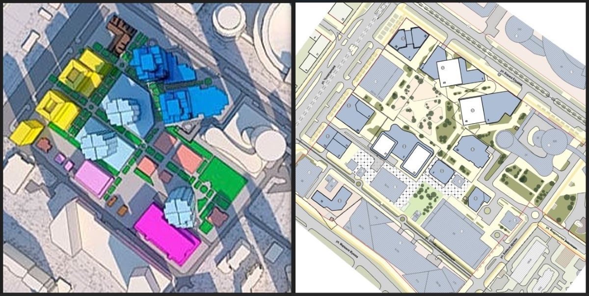 Проект, проходящий сегодня через общественные обсуждения можно также сравнить с концепцией квартала, предложенной на рассмотрение Градсоветом в июле 2021 года. Та, прежняя, концепция предполагала строительство пяти небоскрёбов высотностью от 37 до 49 этажей (это помимо уже существующей «Башни Исеть»). Новый проект предполагает строительство только четырёх башен: одной высотностью 21 этаж, ещё одной 23-этажной и ещё двух 49-этажных.