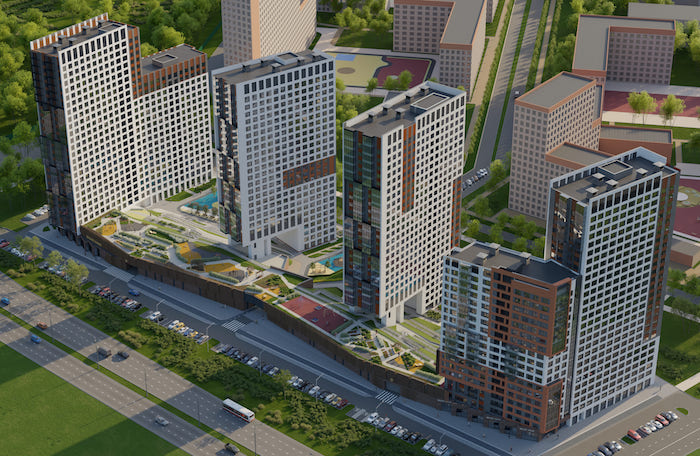 Жилой квартал «Новый ВИЗ» – это ряд домов-башен вдоль ул. Металлургов, объединённых общим стилобатом. Ввод в эксплуатацию второй очереди планируется в третьем квартале 2026 года.