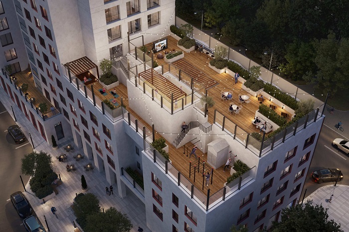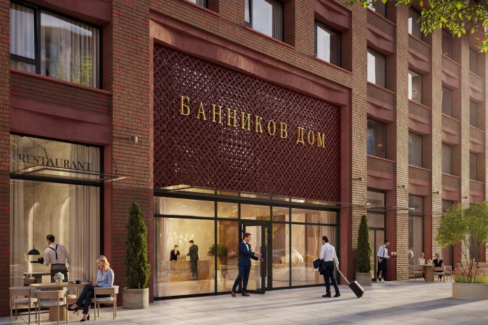 В доме, состоящем из двух секций высотой в 5 и 8 этажей, предусмотрены 11 вариантов планировочных решений. Всего — 76 квартир. В «Банников Дом» появятся многоуровневая лаунж-терраса на крыше малоэтажной части, ресторан авторской кухни, коворкинг с библиотекой, детская игровая и многое другое.
