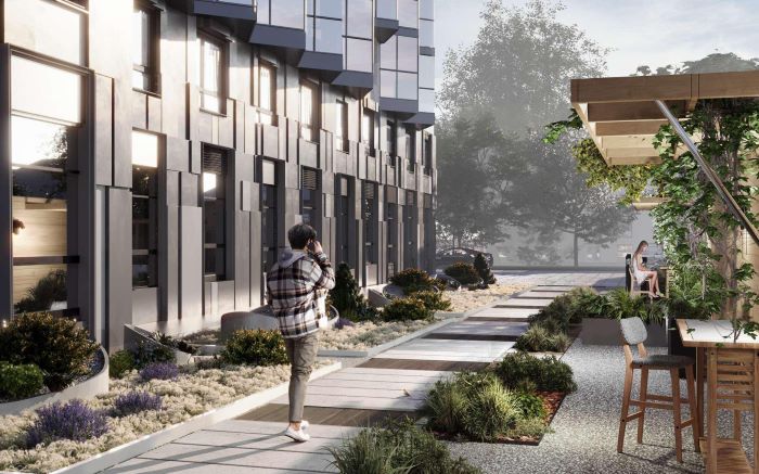 В первой очереди (в двух секциях) будет 296 квартир, в подземном паркинге – 93 машино-места. Из особенностей проекта можно упомянуть: потолки высотой до 4 метров, наличие квартир с мастер-спальнями, с гардеробными, с террасами. На первом этаже помещения под коммерцию, люби, игровая комната, колясочная. В цокольном этаже – индивидуальные кладовые.