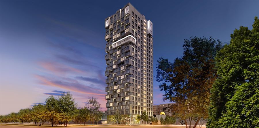 Первый жилой дом – 25-этажная башня на «первой линии» вдоль улицы. Как отмечают проектировщики, её первые этажи будут интегрированы в общий фронт улицы, но начиная с третьего уровня, появятся балконные выступы, плавно увеличивающиеся от нижнего уровня к верхнему.