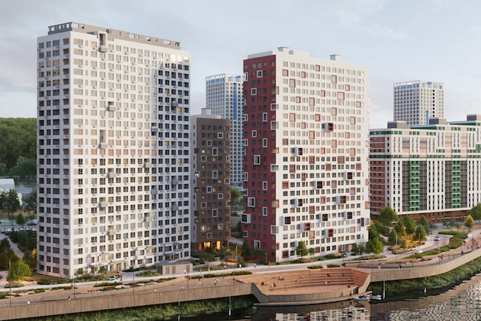Вдоль квартала протянулась благоустроенная набережная. Это полноценное арт-пространство с амфитеатром, где можно собираться компаниями и устраивать концерты, лекции, выставки и уличные фестивали. На набережной предусмотрены детские и спортивные площадки, воркаут-зона, места для отдыха. Есть смотровая площадка и спуск к воде».