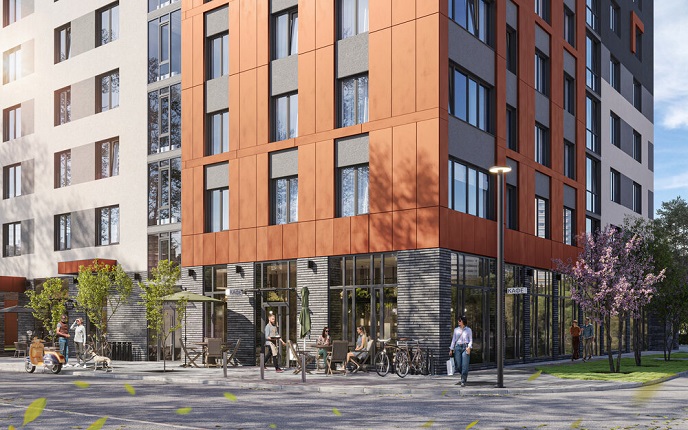 На первом этаже есть коммерческие помещения под офисы с отдельным входом. Также предусмотрены дизайнерский холл с игровой зоной, гостевой санузел, лапомойка, сервисный холл (для транспортировки мебели и строительных материалов). Двор зонирован по возрастам и активностям: для детей – детская площадка, для взрослых – лаунж-зона, для спортсменов – зона воркаута.