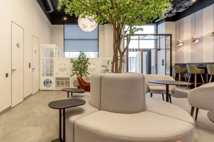 Между домами будет организован общий двор с детскими и спортивными площадками. С внешней стороны – бесплатный наземный паркинг с видеонаблюдением. Ещё одна особенность квартала – сад с клёнами, можжевельником и ирисами.