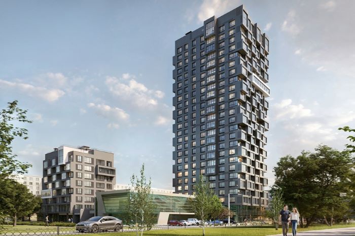 Второй дом – 8-этажный – будет находиться немного в глубине квартала. Между домами появится внутренний двор на стилобате. В жилом комплексе предусмотрены помещения для хранения колясок и велосипедов, гранд-лобби с зоной ожидания, соседское комьюнити с игровой зоной.
