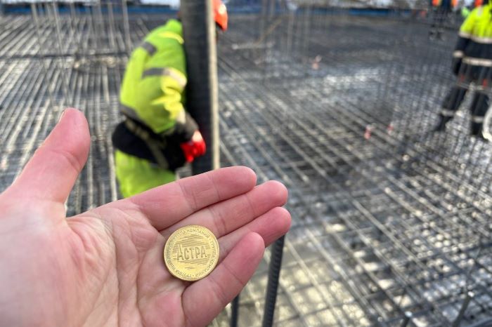 Состоялась торжественная заливка первого конструктивного куба бетона в фундамент жилого комплекса «Кайдзен», сообщает компания-застройщик «Астра». По традиции для благополучия будущих жителей представители компании бросили в бетон брендированную монетку.
