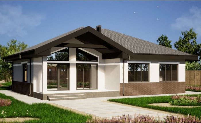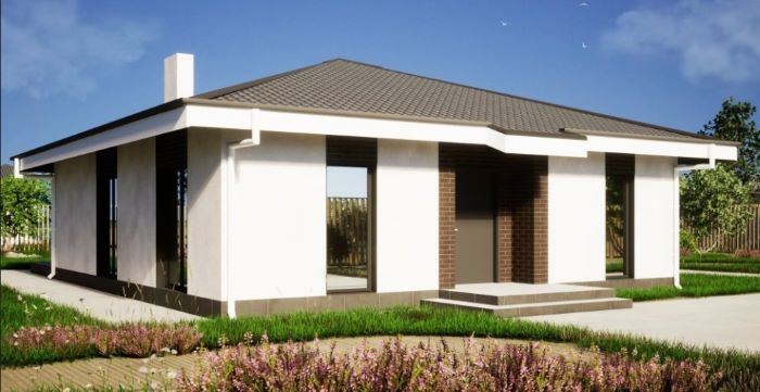Первый строящийся дом имеет второй свет в гостиной. Его площадь –119 кв. м. В доме две спальни, два санузла, кладовая, гардеробная, бойлерная и кухня-гостиная 39 кв. м. Плюс терраса площадью 15,86 кв. м. Стоимость дома с участком (10 соток) и забором вокруг участка – 15,6 млн руб.