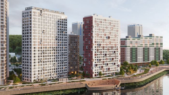 Вдоль квартала протянулась благоустроенная набережная. Это полноценное арт-пространство с амфитеатром, где можно собираться компаниями и устраивать концерты, лекции, выставки и уличные фестивали. На набережной предусмотрены детские и спортивные площадки, воркаут-зона, места для отдыха. Есть смотровая площадка и спуск к воде».