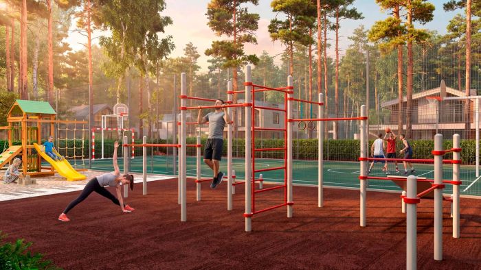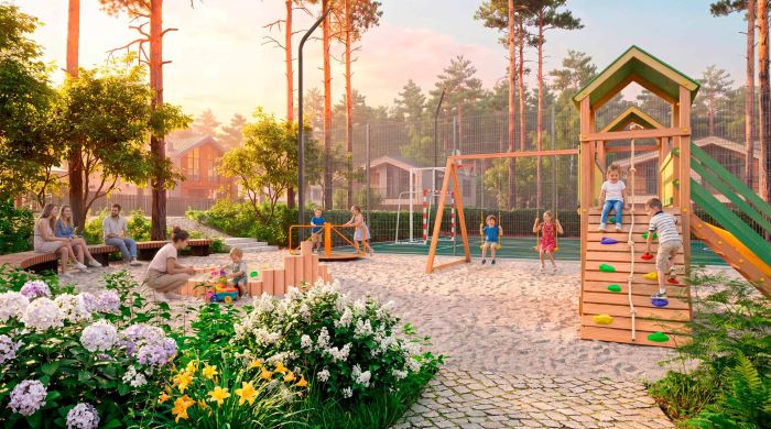 На Территории «Адажио» запроектированы детская и спортивная площадки. Подъездные и внутрипоселковые дороги получат асфальтовое покрытие, предусмотрена возможность проведения интернета.
