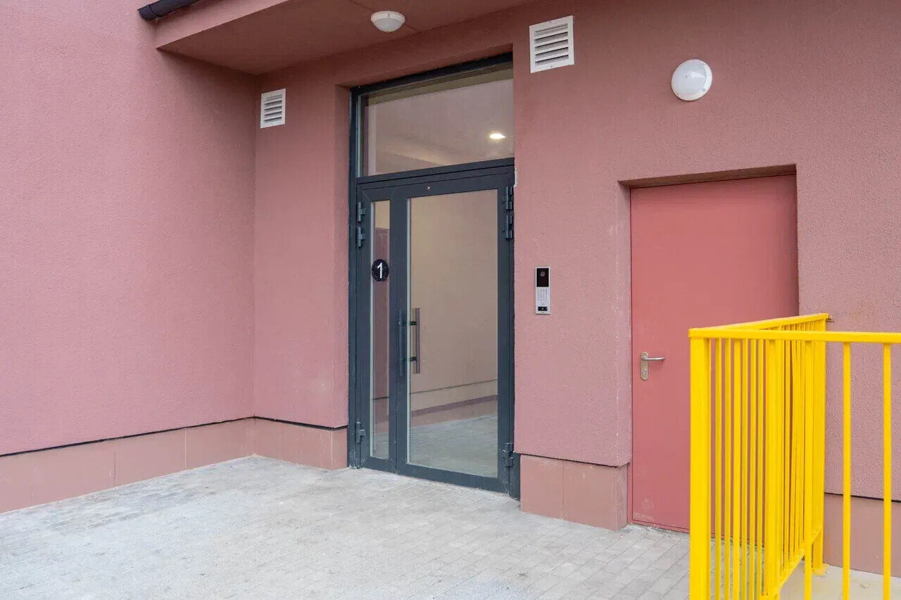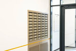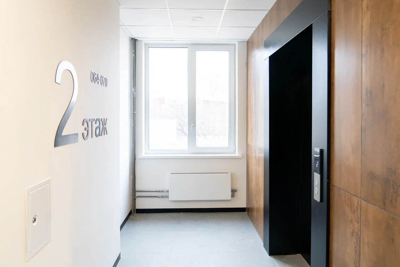 Безбарьерный холл оформлен в светлых и золотистых оттенках, оборудован мягкой зоной ожидания и помещениями для хранения колясок и велосипедов, на цокольном этаже расположены кладовые.