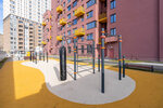 Сердце жилого комплекса — массивный зеленый сквер внутри двора. В нем можно наслаждаться отдыхом и красотой природы. Для тех, кто предпочитает спорт — во дворе появится несколько зон воркаута. Для детей — детские площадки с качелями, горками и песочницей, где спрятаны скульптуры, раскопать которые захочет каждый маленький искатель приключений.