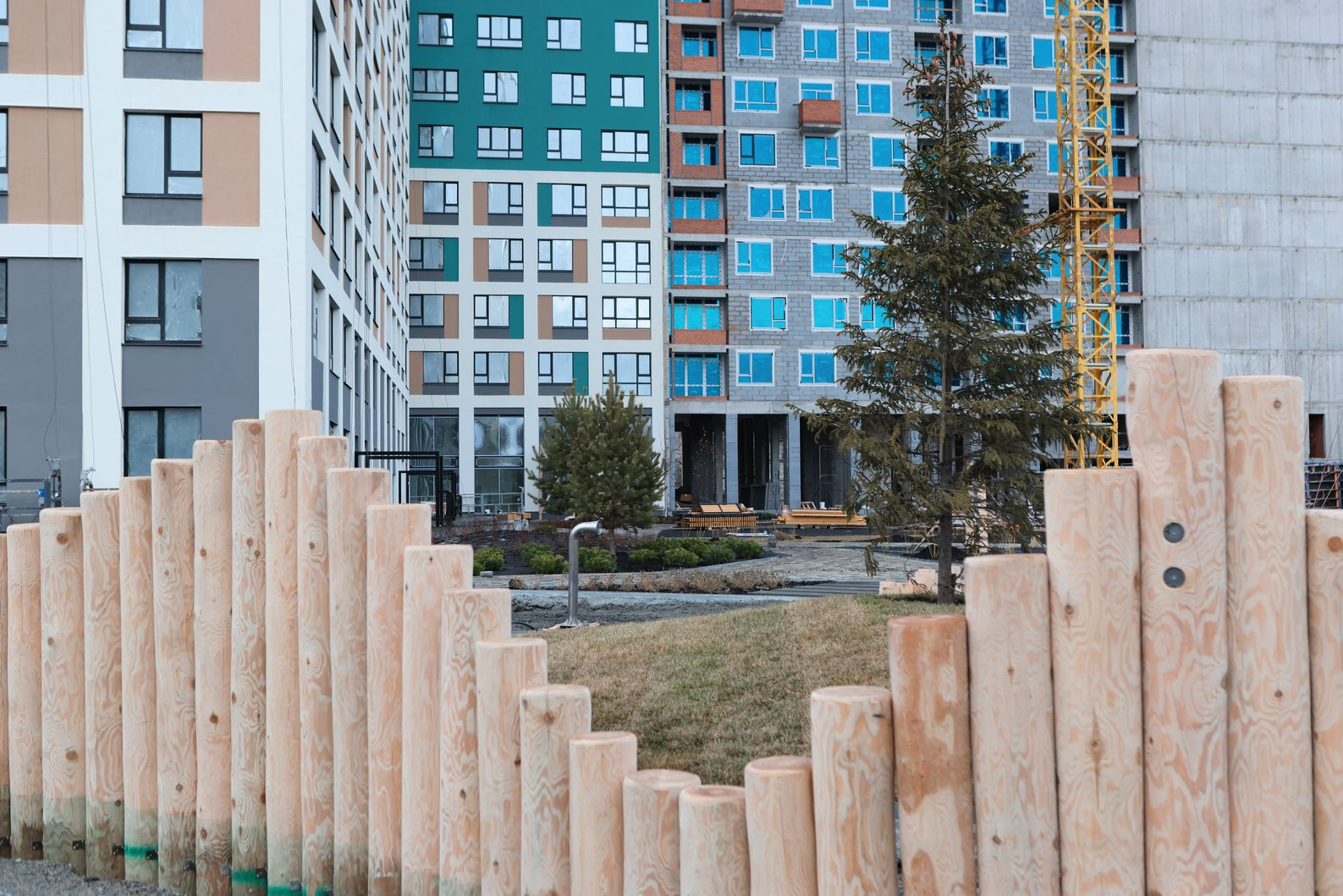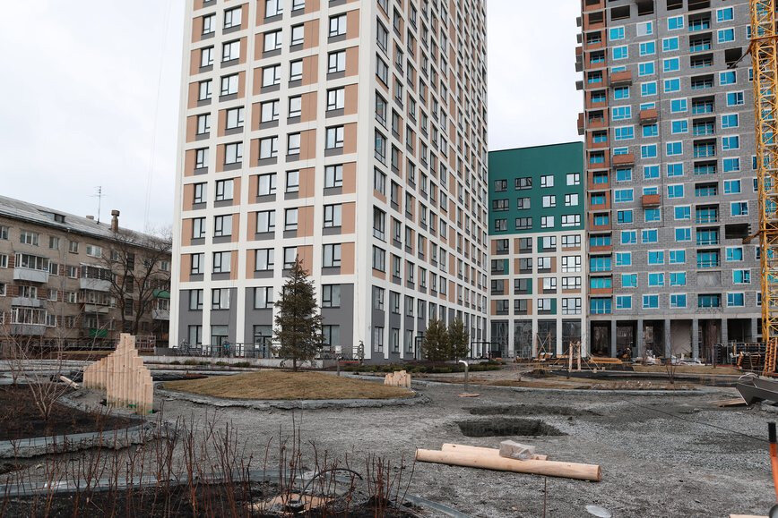 - ведется монтаж МАФ во дворе комплекса;