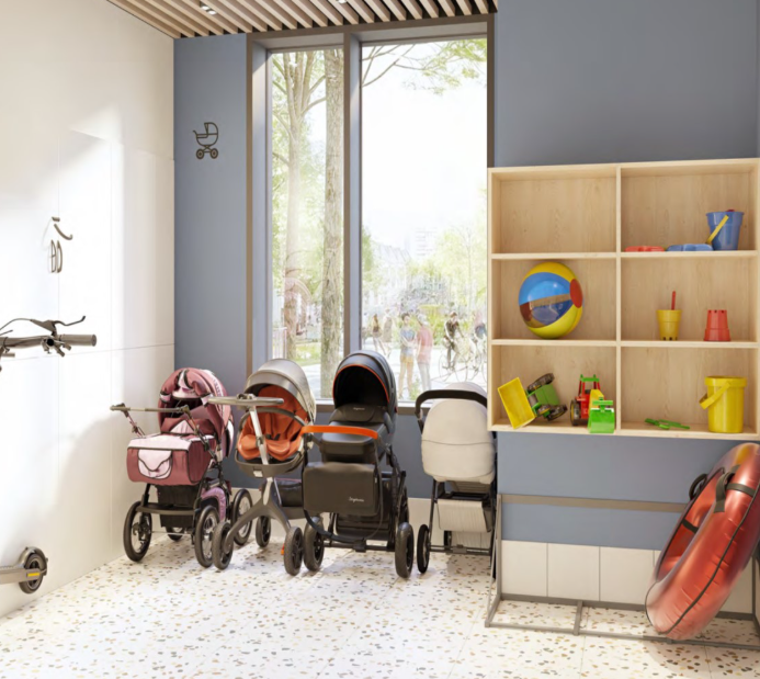 На -1 этаже спроектирован подземный паркинг и отдельные кладовые для хранения с доступом на лифте. Видеонаблюдение 24/7. Въезд оборудован шлагбаумом, ключи доступа – только у владельцев машиномест.