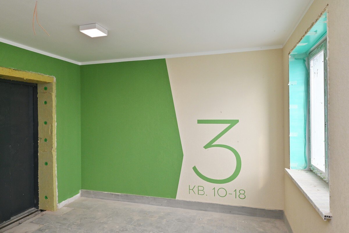 На первом этаже есть детская комната и коворкинг. Пока малыши играют, родители могут заняться текущими рабочими вопросами или просто отдохнуть. Также есть зона с пуфиками и телевизором. В каждой секции предусмотрены колясочные, чтобы жители могли комфортно распоряжаться пространством.