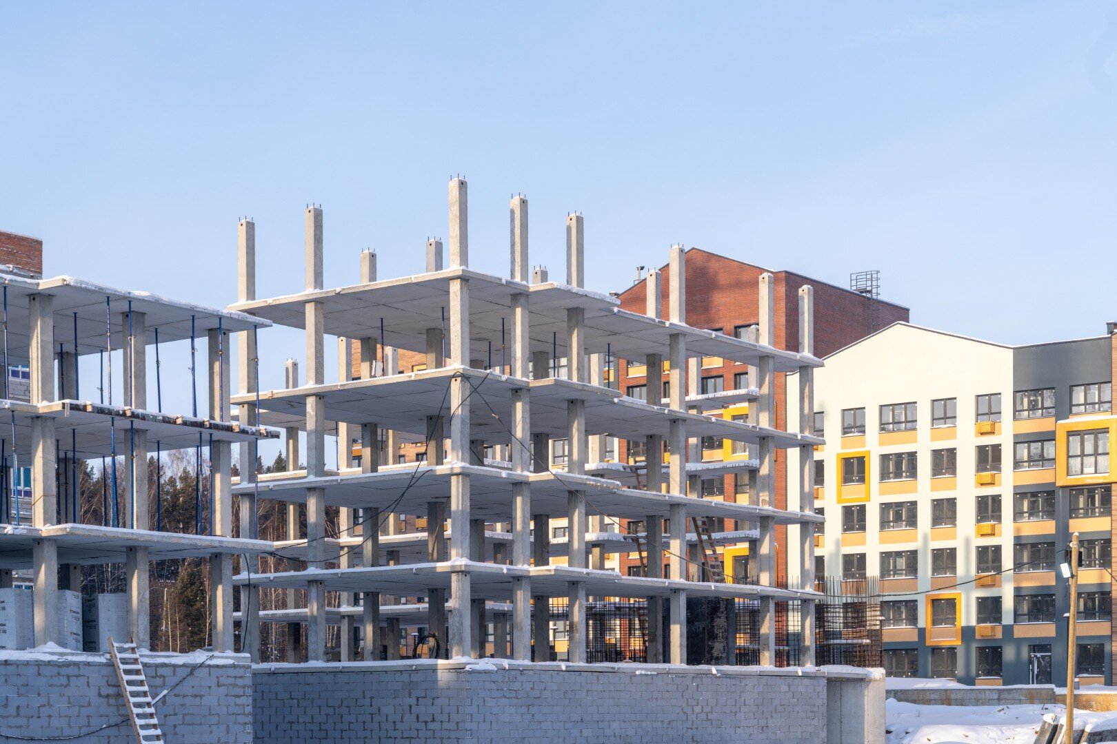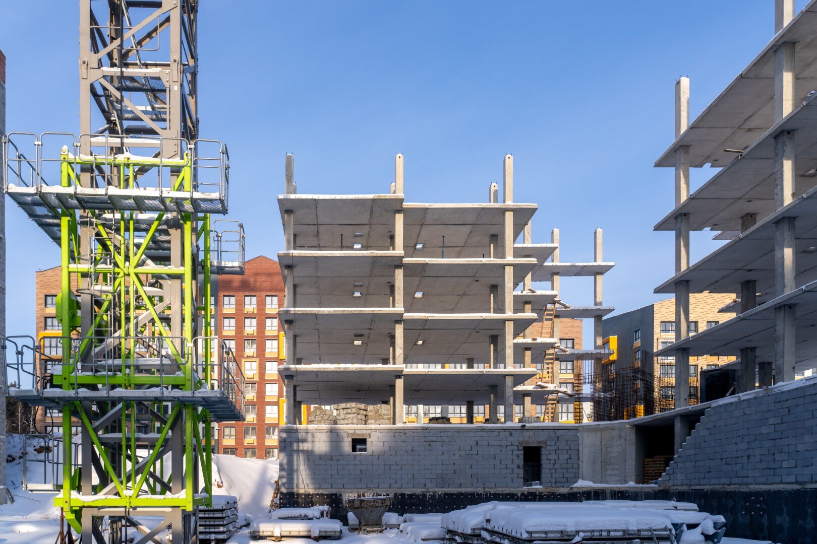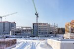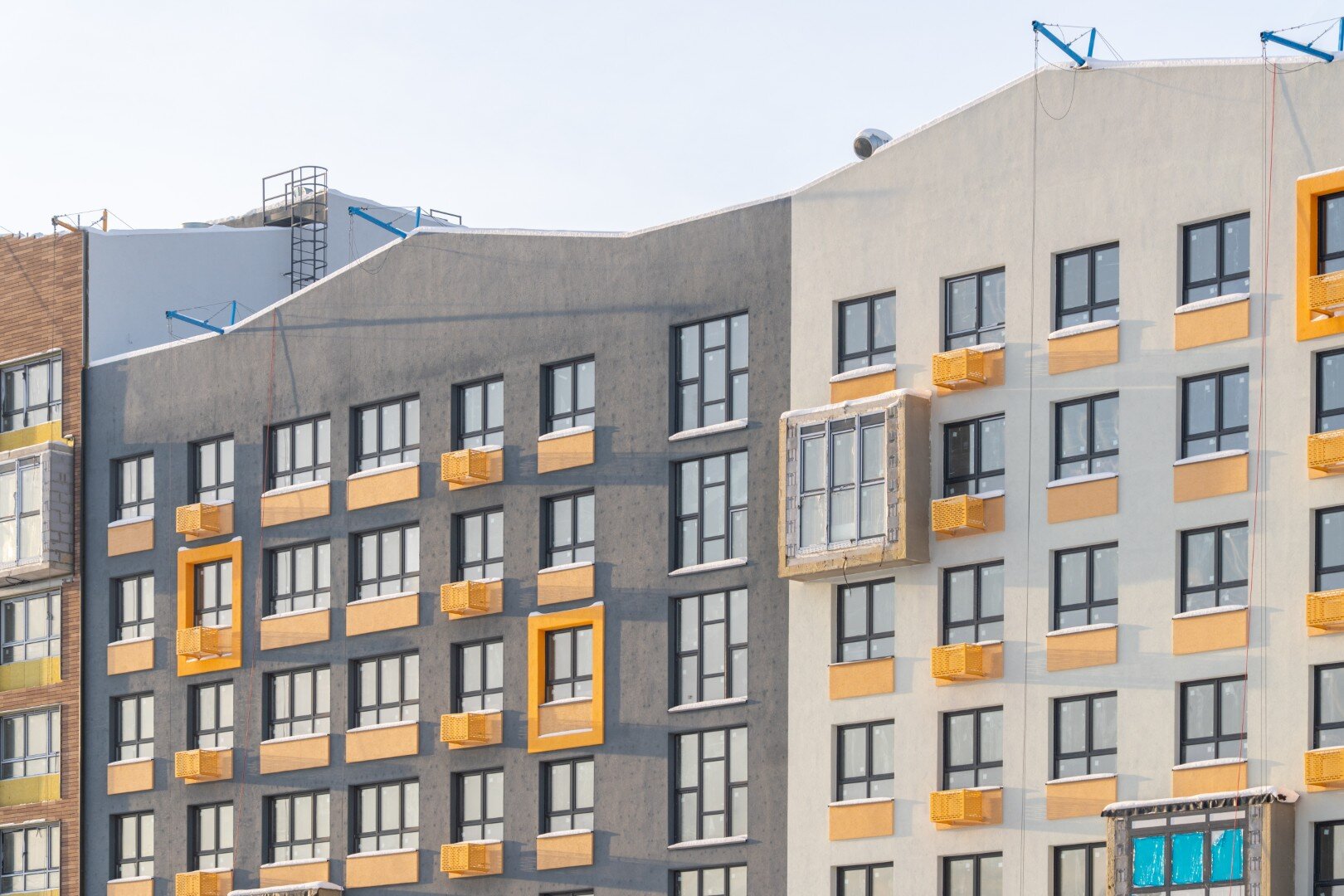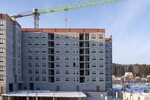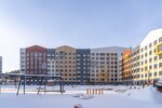 Авторская, индивидуальная архитектура каждой очереди. Сочетание штукатурного и вентилируемого фасадов с имитацией кирпичной кладки и вставок из деревянных материалов.