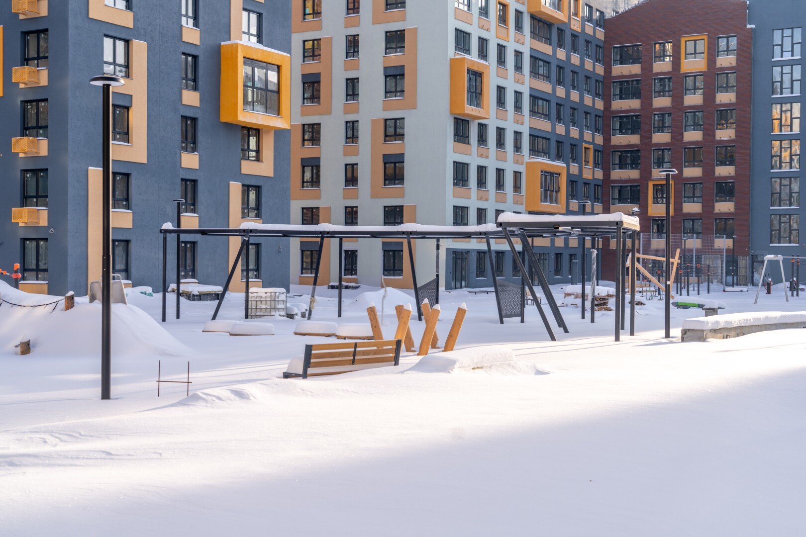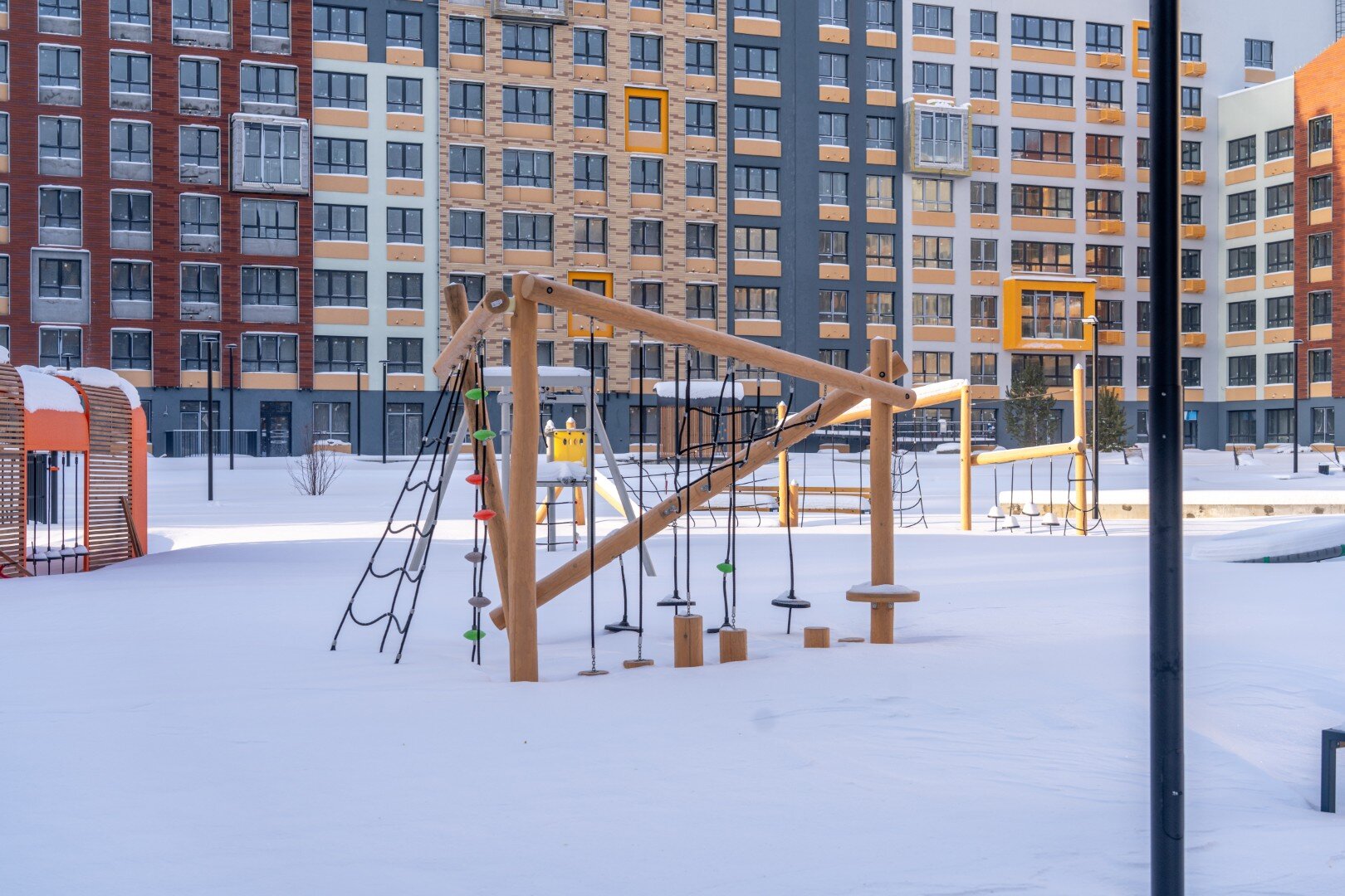 Полная приватность, дворы без машин, большая прогулочная зона с арт-объектами (променад), спортивные зона в тихой части квартала, комфортная плотность, обеспеченность парковками для всех, в том числе гостевыми