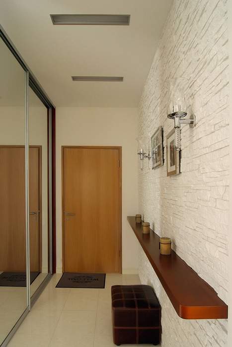 В гостиной диван-трансформер, плазменный телевизор и пристенная мебель.