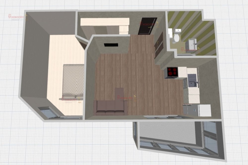 В квартире выполнен ремонт - обои, натяжной потолок, ламинат. Естт кухонный гарнитур с раковиной и смесителем, варочная поверхность, холодильник, обеденный стол, стулья, кровать, тумбы, диван, 2 кресла, журнальный стол.