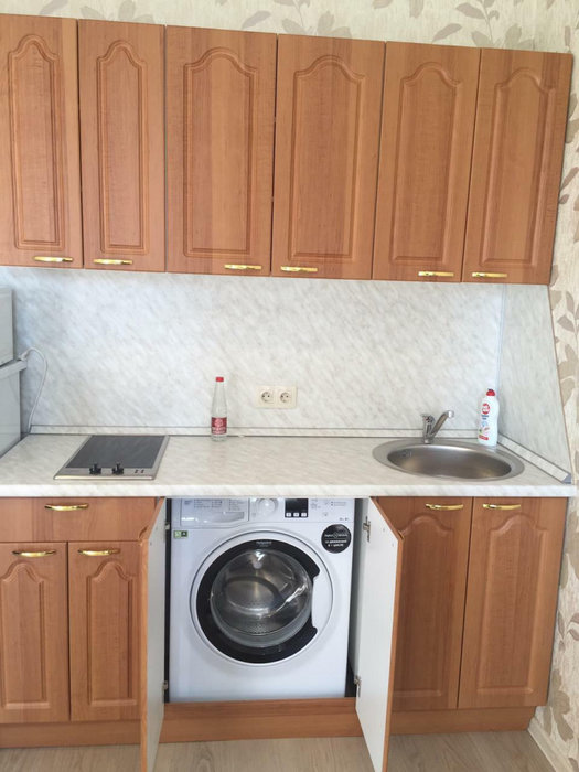 Есть стиральная машина, кухонный гарнитур, холодильник, шкаф, диван, интернет.