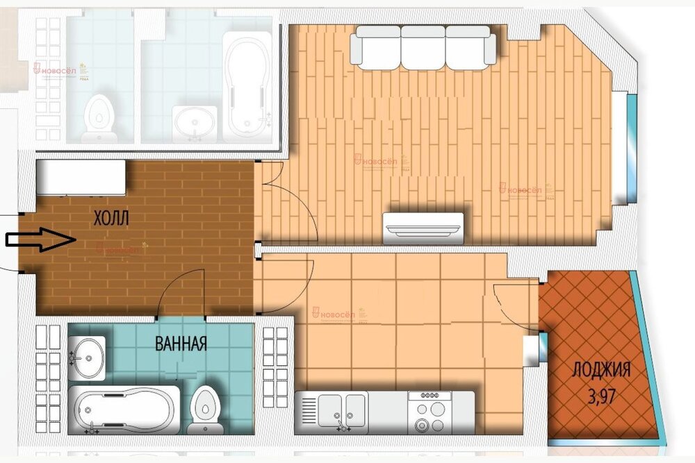Общая площадь:41 м2