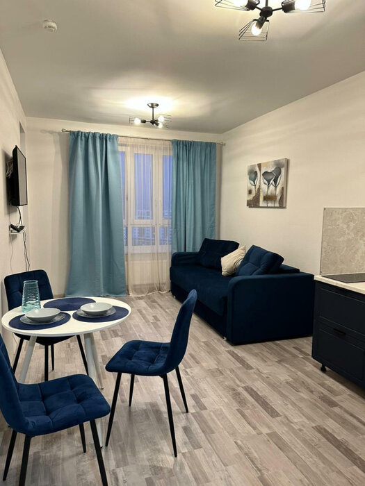 Квартира в отличном состоянии, идеально подходит для долгосрочного проживания. В квартире есть все необходимое для жизни. В комнате: гарнитур-стенка, мягкая мебель - диван, шкаф для одежды и белья. На кухне: кухонный гарнитур, обеденный стол со стульями, в прихожей вешалка, обувная тумба. Из бытовой техники: холодильник, электрическая плита с духовкой, вытяжка, стиральная машина, телевизор. Ванная комната и туалет совмещены. Тюлевые занавески на окнах. Из комнаты выход на большую остекленную лоджию, вид из окон во двор, на детскую площадку. Запоминающееся иллюминация в темное время суток. Интернет на выбор от Ростелеком, МТС, Инсис, Планета и т.д.