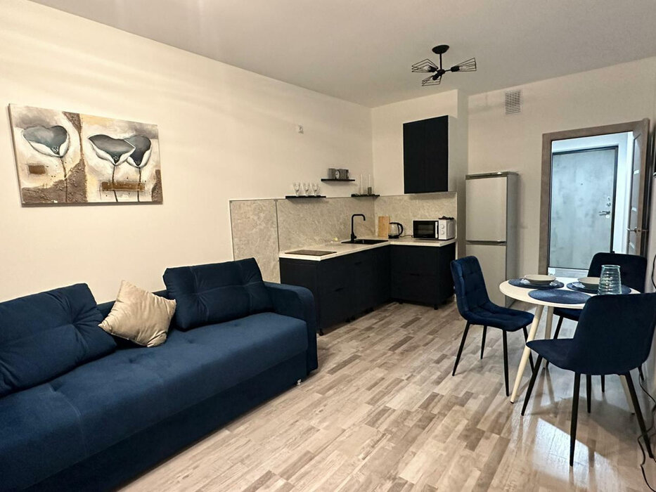 На длительный срок сдается уютная 1-комнaтная квартира в ЖК Тихомиров. Дом комфорт класса расположен в современном, быстрорастущем микрорайоне с хорошей транспортной доступностью и развитой инфраструктурой, богатый выбор разнообразных магазинов, например, до торгового-развлекательного центра «Радуга Парк» две остановки на общественном транспорте. К дому пристроен семиэтажный паркинг где можно взять в аренду парковочное место.