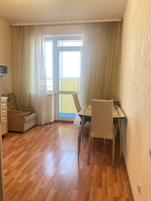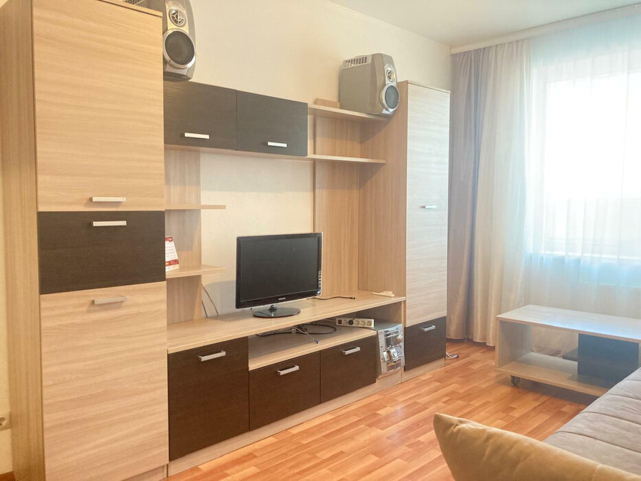 Квартира 40 кв.м. оборудована кухней-гостинной: диван-кровать, ТВ,обеденная зона,кухонный гарнитур с плитой и духовым шкафом.