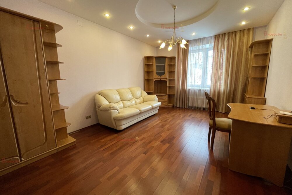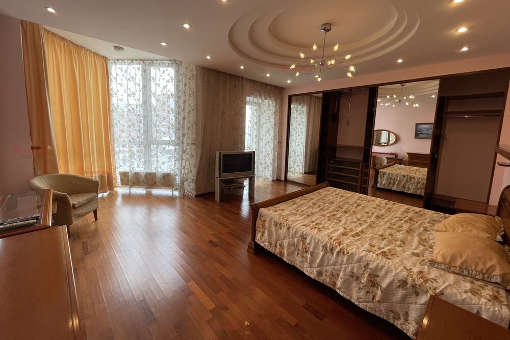 Объект № 194185. Сдам просторную 3-комнатную квартиру бизнес-класса в центре Екатеринбурга. Дом индивидуальной архитектурной формы по адресу Белинского 61. Закрытая придомовая территория, круглосуточная охрана, консьерж, видеонаблюдение, подземный паркинг. Квартира расположена на 7 этаже. На площадке всего 2 квартиры. Окна выходят на три стороны: восток, запад и север. Высокие потолки. Панорамное остекление. В квартире общей площадью 210 квадратных метров свободно разместились 3 изолированных спальни, просторная гостиная, совмещённая с кухней – 75м2, гардеробная, кладовая, большая ванная комната с двухместной джакузи и сауной, гостевой санузел. Есть электрообогрев пола (кроме спален), в спальнях выложен паркет из натурального дерева, установлены водонагреватель и индивидуальные приборы учёта ресурсов, включая отопление. Встроенная мебель и бытовая техника. Развитая социальная инфраструктура: в шаговой доступности фитнес-центры, деловые центры, театры и университеты, банки, бутики премиум-класса, кафе и рестораны, парк Павлика Морозова, продуктовые магазины, детский сад «Согласие», детские спортивные школы, гимназии №13 и №94, Лицей Дягилева, Свято-Троицкий Кафедральный Собор, медицинские центры. Коммунальные платежи оплачиваются отдельно. Оплата аренды за 1й и последний месяц проживания, и депозит в размере одного месяца аренды. Комиссия 20тр.