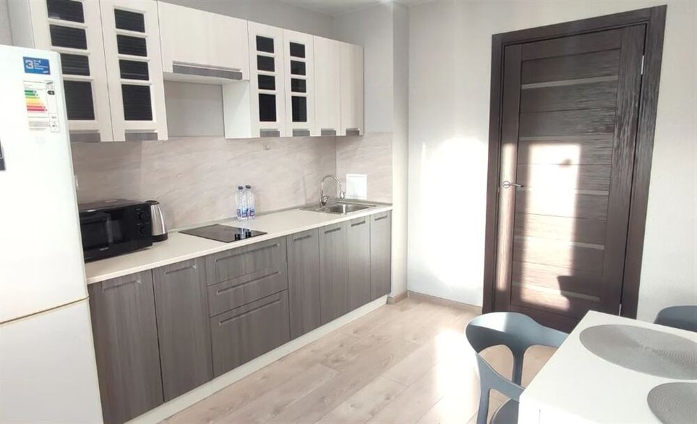 Просторная однокомнатная квартира в теплом кирпичном доме 2008 года постройки. Большая комната 21 кв.м. разделена на две зоны: гостиная и детская. При желании детскую кровать можно убрать. В комнате новый раскладной диван и стенка, есть телевизор. На кухне кухонный гарнитур с варочной поверхностью, духовкой, микроволновкой, холодильником, плюс раскладной диван. Санузел раздельный, в отличном состоянии, есть стиральная машина. В прихожей большая гардеробная. Свободно может разместиться семья из 4 человек. Оплата: 30000 т.р. в месяц + КУ. Депозит 15 т.р. Комиссия агента 8 т.р. по факту заселения. ID объекта в нашей базе: 11839