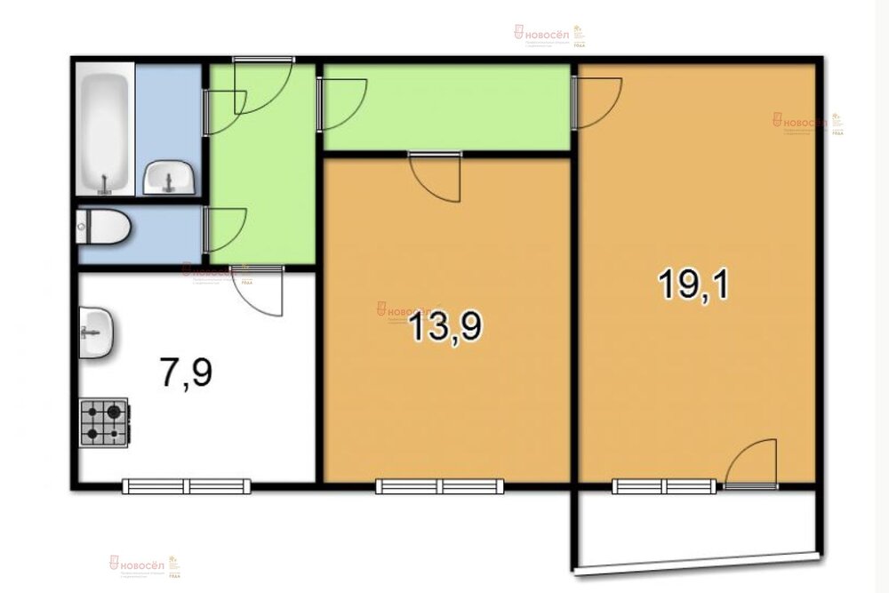 2-к квартира, Надеждинская, 14