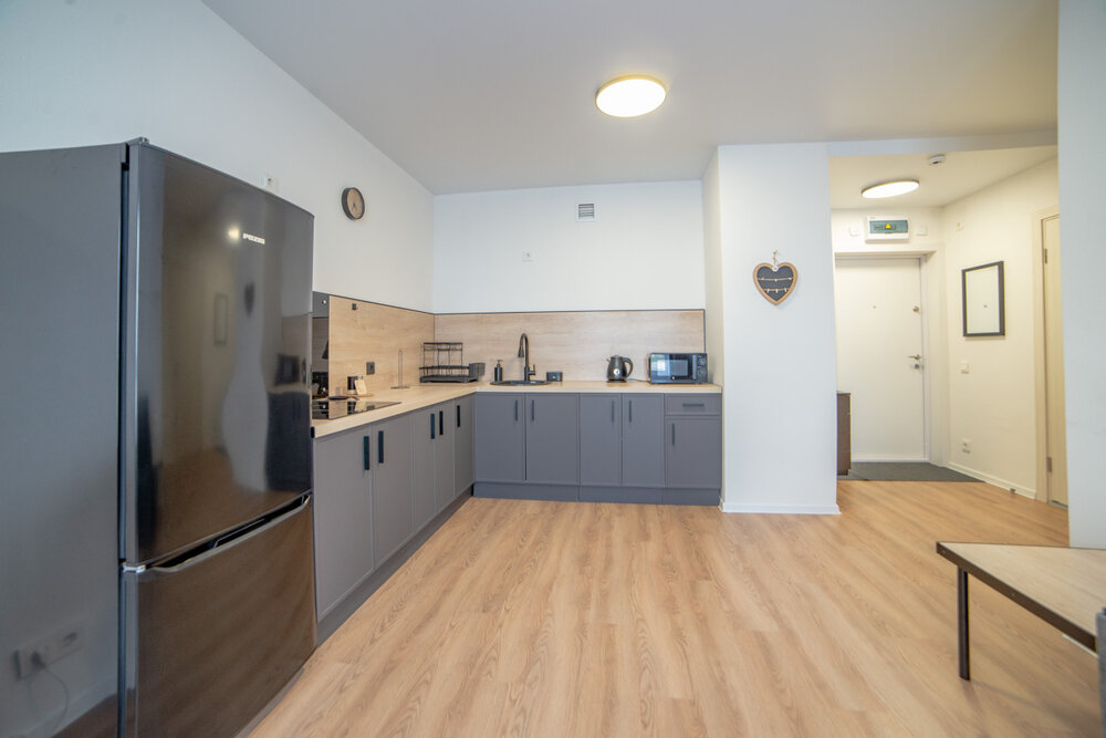 Комфорт и функциональность: Квартира оборудована всем необходимым для комфортного проживания: холодильником, телевизор, стиральная машина, удобной мебелью (диван-кровать, кухонный гарнитур).