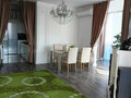 В квартире общей площадью 210 квадратных метров свободно разместились 3 изолированных спальни, просторная гостиная, совмещённая с кухней – 75м2, гардеробная, кладовая, большая ванная комната с двухместной джакузи и сауной, гостевой санузел. Есть электрообогрев пола (кроме спален), в спальнях выложен паркет из натурального дерева, установлены водонагреватель и индивидуальные приборы учёта ресурсов, включая отопление. Встроенная мебель и бытовая техника.