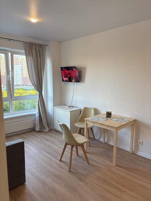 В квартире выполнен ремонт - обои, натяжной потолок, ламинат. Естт кухонный гарнитур с раковиной и смесителем, варочная поверхность, холодильник, обеденный стол, стулья, кровать, тумбы, диван, 2 кресла, журнальный стол. Во всех комнатах есть гардины. В квартиру проведен интернет и ТВ Билайн. Во дворе есть детская площадка, парковка для машин. Инфраструктура - в шаговой доступности детские сады, школа, продуктовые магазины, кафе, остановки общественного транспорта, с которых можно без проблем уехать в любой район города. Также недалеко ТРЦ Глобус. До метро на автобусе 10 минут. ID объекта в нашей базе: 10238