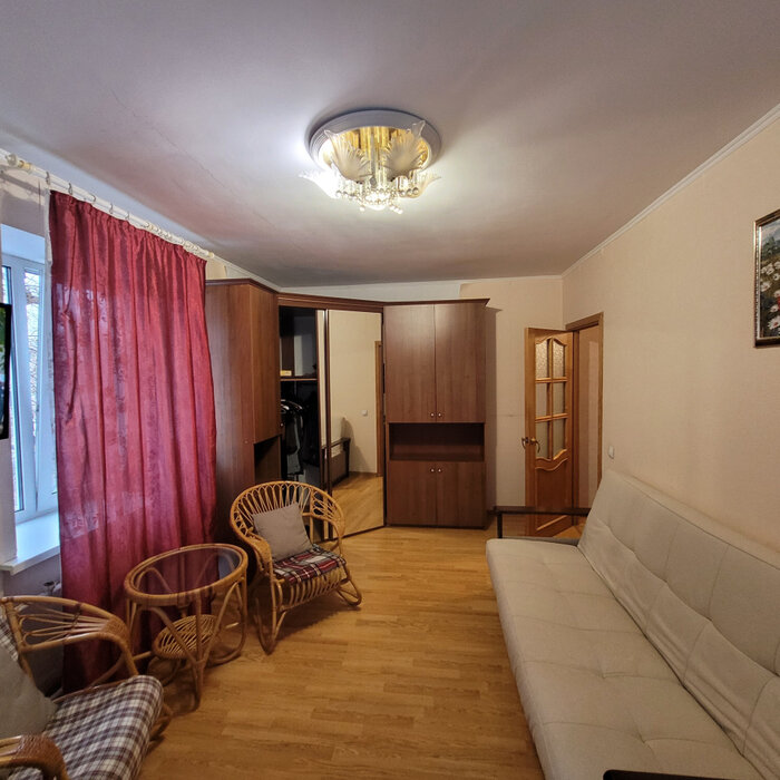 Квартира в жилом состоянии, сдается на длительный срок. В квартире есть все необходимое: в комнате: трехсекционный шкаф -купе, мягкая мебель - диван, плетенная мебель, состоящая из столика и двух кресел, телевизор. На кухне-столовой кухонный гарнитур, обеденный стол с креслами, в прихожей вешалка, обувная тумба, диван, пристенная мебель. Из бытовой техники: холодильник, газовая плита с духовкой, микроволновка, стиральная машина, еще телевизор. Ванная комната и туалет совмещены. Тюлевые занавески на окнах, в комнате на окнах еще и шторы. Интернет на выбор от Ростелеком, МТС, Инсис, Планета и т.д. Подключено телевиденье «Wink».