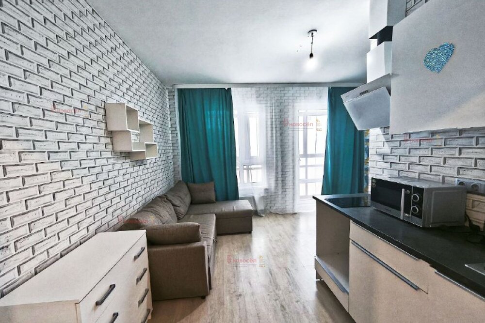 В квартире новая бытовая техника: холодильник, стиральная машина, микроволновая печь, чайник, варочная поверхность, вытяжка. 2 раскладных дивана, шкаф-купе. Просторная лоджия на 2 окна. Студия позволяет сделать зонирование на спальню и гостиную.