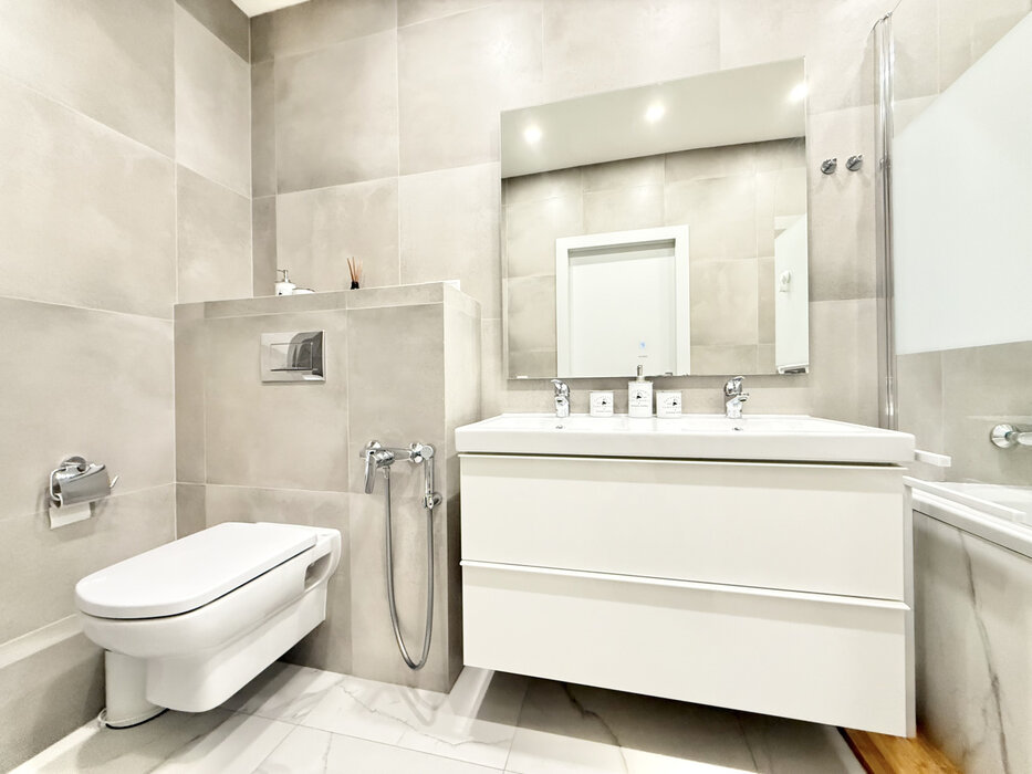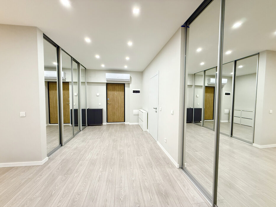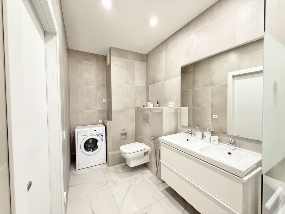 Квартира оснащена всем необходимым для комфортного проживания и полностью готова к заселению: кухня оборудована встроенной техникой (варочная поверхность, духовой шкаф, холодильник, микроволновая печь, посудомоечная машина), в ванной установлена стиральная машина, в гостиной ТВ, а в комнатах предусмотрены места для хранения вещей.