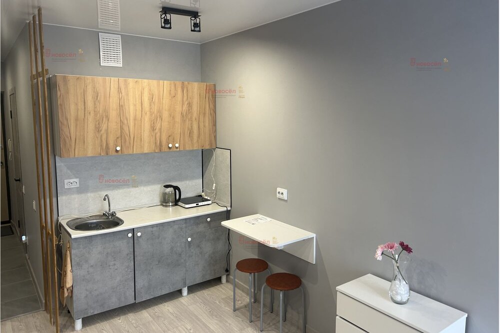 Дом тёплый, отопление хорошее. Высота потолков в квартире 2,65, балкон застеклён. В комнате имеется мебельная стенка, раскладной диван евро - книжка (совершенно новый), стулья, место под телевизор, возможность подключения к интернету. На кухне имеется кухонная мебель, стулья, вся необходимая техника: электрическая плитка, холодильник, электрический чайник, микроволновка.