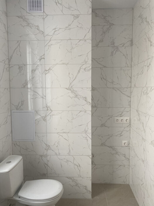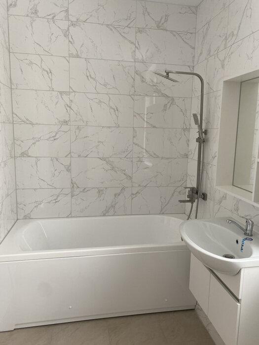 В ванной комнате установлена стиральная машина.
