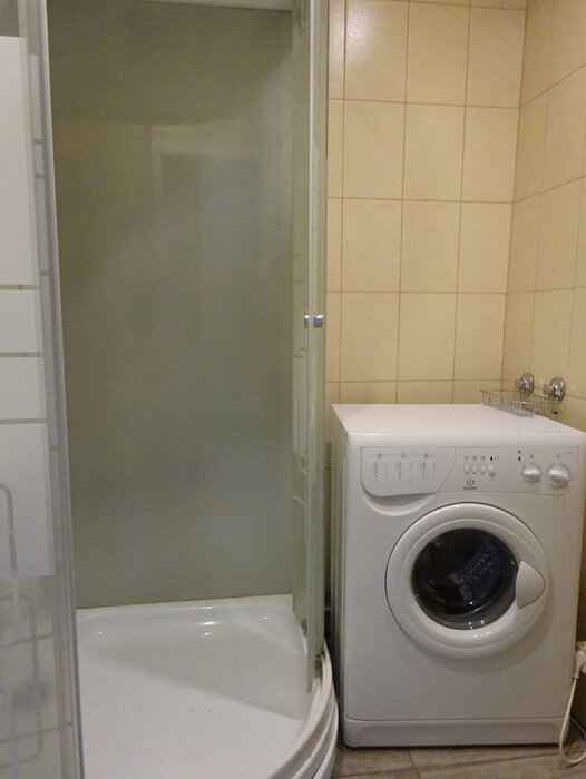- В квартире есть все необходимое для удобства проживания: телевизор «Sony», система отпаривания и утюг «Tefal», пылесос Bosch, стиральная и сушильная машины «Miel», гладильная и сушильная доски.