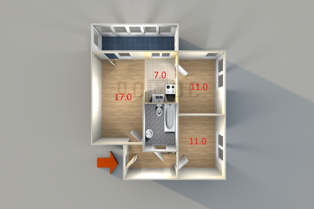 3-к квартира, Островского, 1