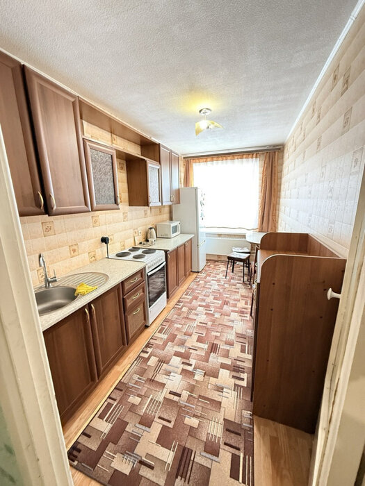 В квартире есть все необходимое: кухня с бытовой техникой (холодильник, плита, микроволновая печь). Спальные места, места для хранения. Раздельный санузел, установлена стиральная машина.