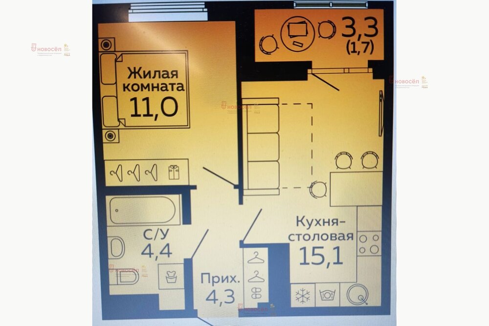 Екатеринбург, ул. Новосинарский, 5 (Птицефабрика) - фото квартиры 20 мая 2025 90 дн. 1 33.8 4/18 24 000