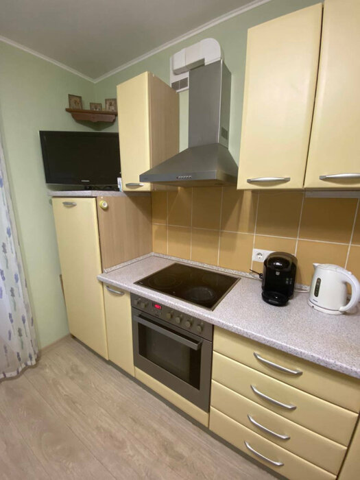 В квартире есть все необходимое: кухня с бытовой техникой (холодильник, плита, микроволновая печь). Спальные места, места для хранения. Раздельный санузел, установлена стиральная машина.